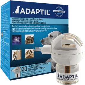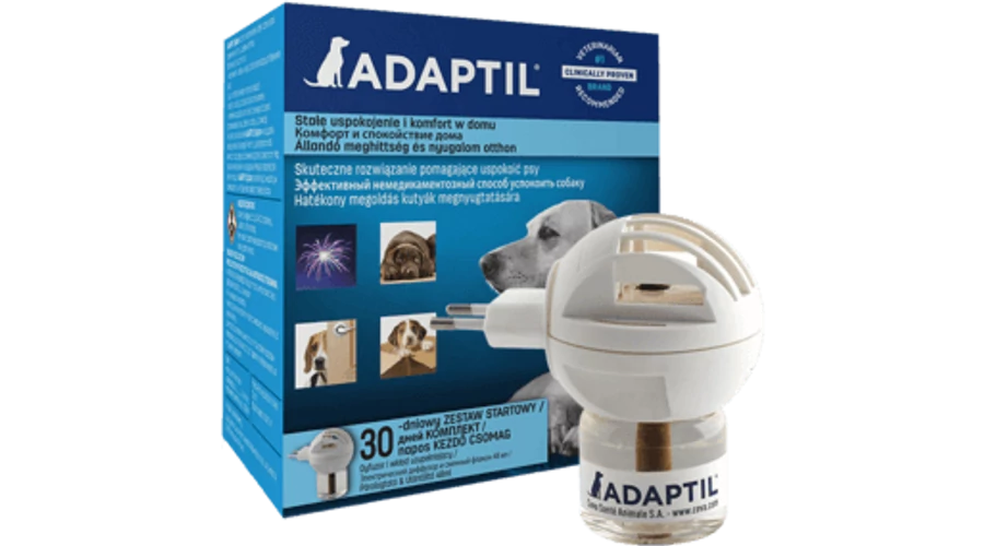Adaptil Párologtató készülék kutyáknak – Az Adaptil egy olyan termék, amely a kutya ún. "appeasing" feromonjának mesterséges változatát tartalmazza, és ezáltal segít megoldani, illetve megelőzni a kölyök és felnőtt kutyák félelemmel és nyugtalansággal kapcsolatos vagy más stresszhelyzeti problémáit.