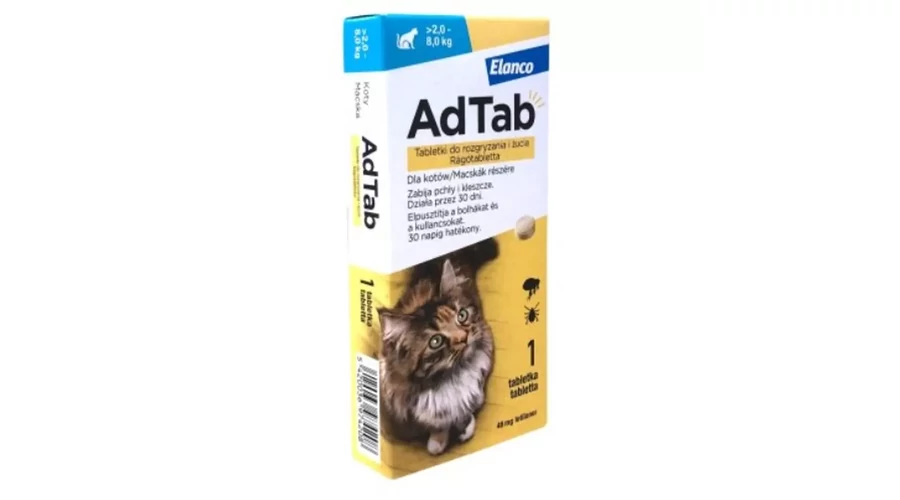 Kiterjedt kutatások igazolják, hogy az AdTab-ot a macskák jól tolerálják és kiemelkedően hatékony a használati utasításban előírt adagban alkalmazva. Az AdTab hatóanyaga a lotilaner, ami túlzott stimulációt vált ki a bolhák és kullancsok idegvégződésein, és gyors pusztulásukat eredményezi. Az adagolást megelőzően a macskára került bolhák 8 órán belül elpusztulnak, az adagolást megelőzően a macskára került kullancsok pedig 18 órán belül pusztulnak el. Bolhák esetében a hatás a rákapcsolódástól számított 12 órán belül kialakul, és a készítmény beadását követő egy hónapos időszakban fennáll. Egy teljes hónapon keresztül hatékony bolhák és kullancsok ellen.