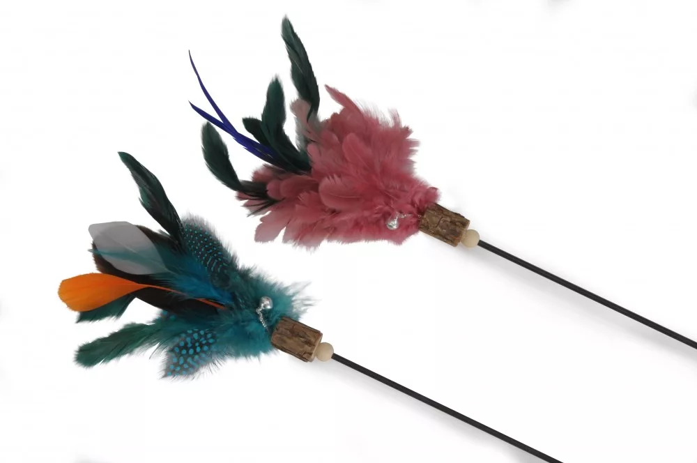 Pálcás tollas cicajáték 65 cm puha markolattal fekete