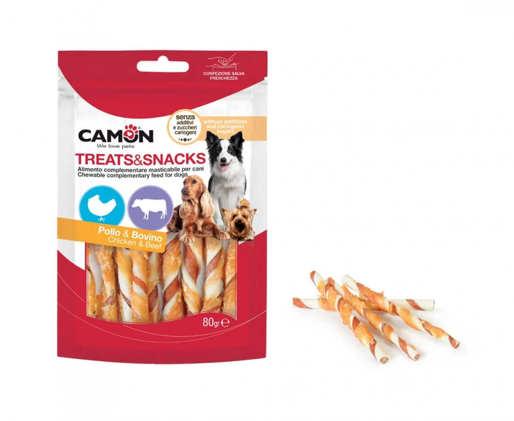 Camon szárított marhabőrre tekert csirkés snack 80g többszínű