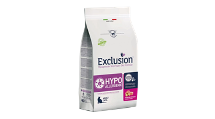 Jellemzői: Az Exclusion Diet Hypoallergenic egy teljes értékű diétás eledel, amelyet felnőtt macskák számára állítottak össze az összetevőkkel és tápanyagokkal szembeni intolerancia csökkentésére. Ez a teljes értékű diétás eledel válogatott fehérje- és szénhidrátforrásokat tartalmaz.