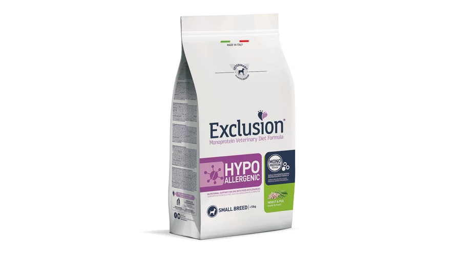 Az Exclusion Diet Hypoallergenic Insect and Pea egy teljesértékű diétás eledel felnőtt kutyák számára, melyet az összetevők és a tápanyag intollerancia csökkentésére fejlesztettek ki. Ez a komplett diétás eledel válogatott forrásból származó fehérjéket és szénhidrátokat tartalmaz.