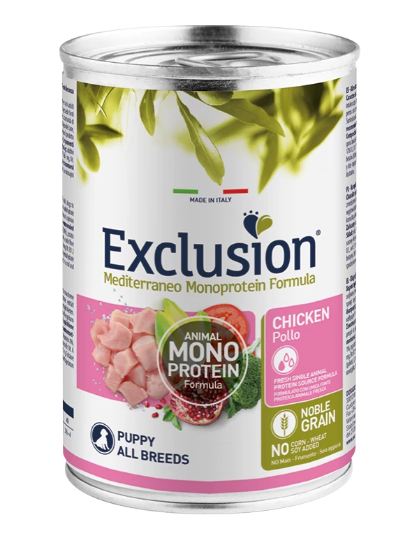 Exclusion Mediterraneo Monoprotein Noble Grain Puppy Chicken – teljes értékű kölyökkutya táp