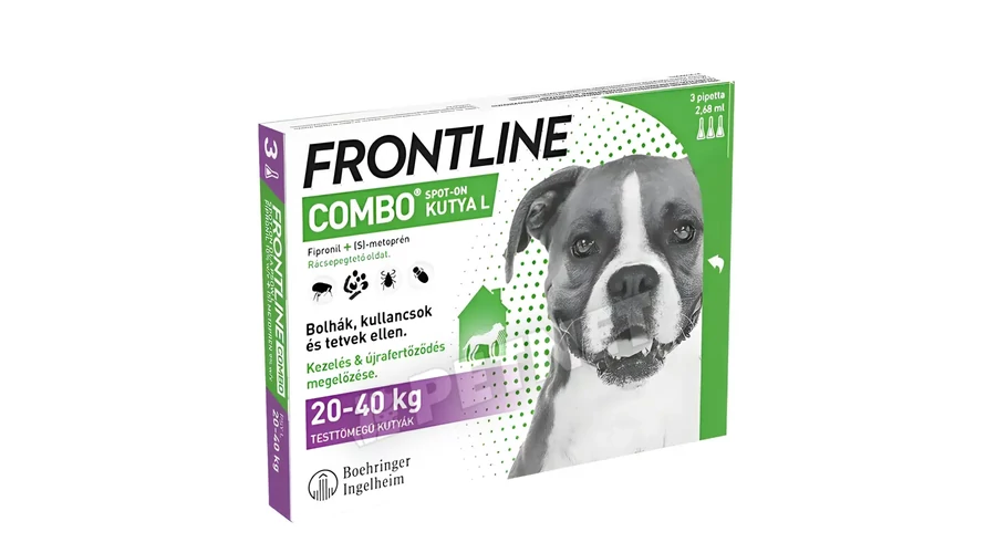 A FRONTLINE Combo® két hatóanyaga: a fipronil és a rovar növekedés-szabályozó (S)-metoprén. Míg a fipronil elpusztítja a kedvenceddel közvetlen kontaktba kerülő kifejlett bolhákat és kullancsokat, addig az (S)-metoprén megöli az otthonodban lerakott bolhapetéket illetve az abból kikelő lárvákat is.