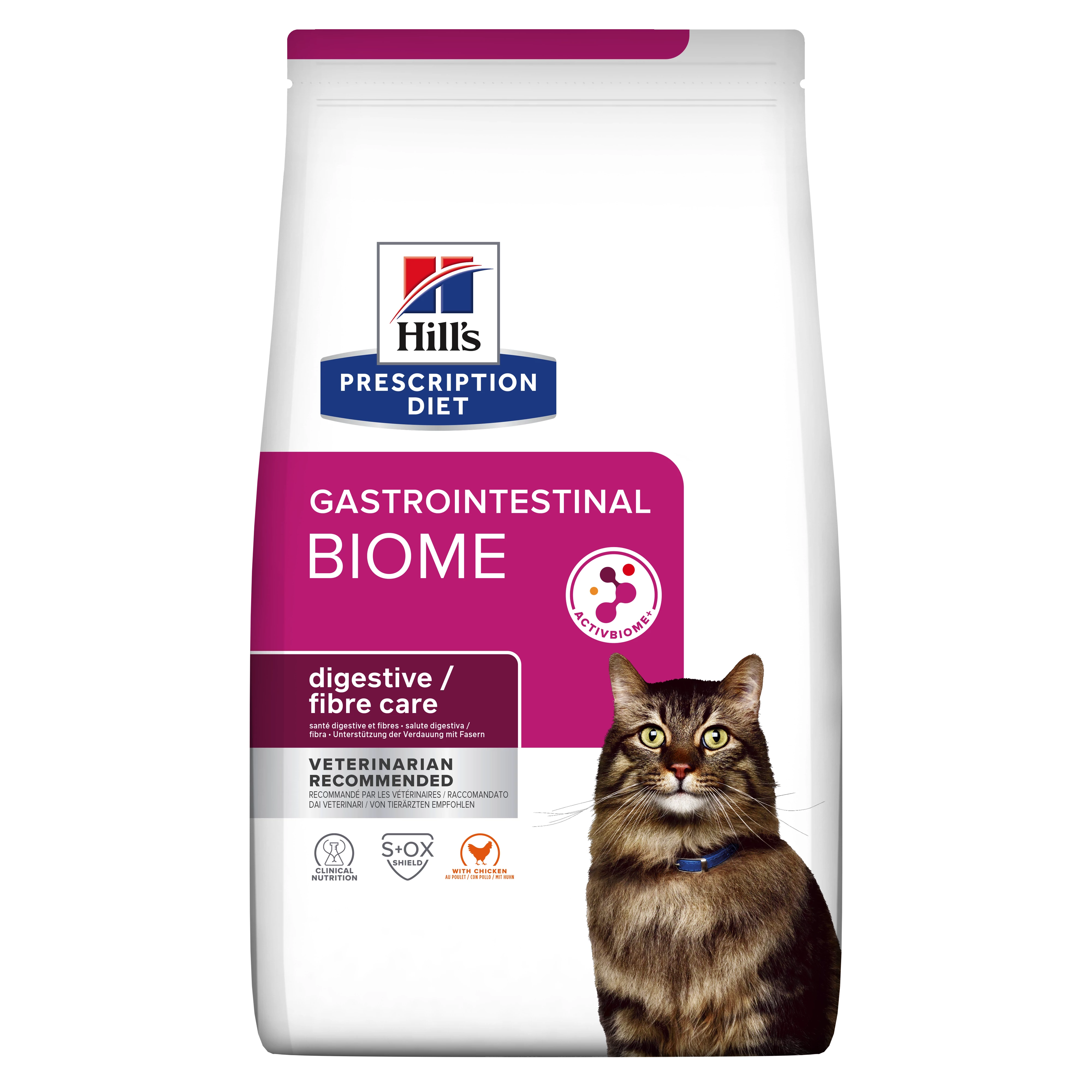 A Hill's Prescription Diet Gastrointestinal Biome egy teljes értékű diétás eledel csirke ízesítéssel, gyomor- és bélrendszeri problémákkal küzdő felnőtt macskáknak.