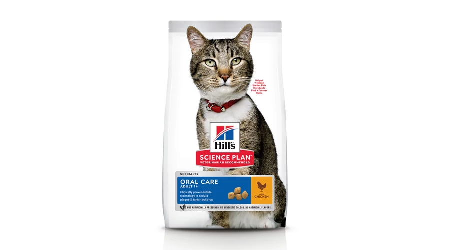A Hill's Science Plan Adult Oral Care száraz macskatáp egy tökéletesen kiegyensúlyozott táplálék, mely klinikailag bizonyított hatású antioxidánsokkal és fejlett fogápolási technológiával csökkenti a fogkő és a lepedék képződését.