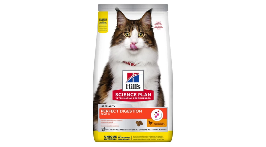 A Hill's Science Plan Feline Perfect Digestion macskaeledel egyedülálló módon támogatja a macska emésztését és egészséges bélflóráját prebiotikus rostkeverékével, az ActiveBiome+ formulával, melyet először a gyártó gyógytápjaiban alkalmaztak.