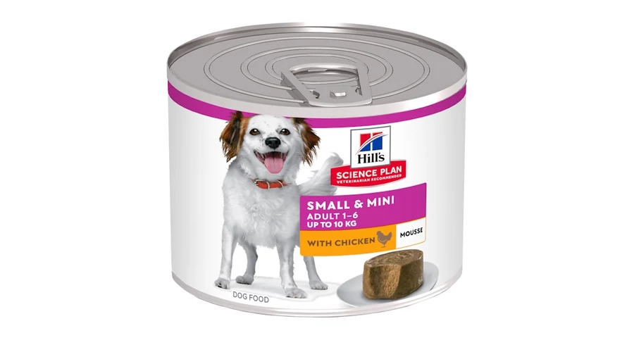 A Hill's Science Plan kistestű és mini felnőtt kutyáknak készült csirkés mousse teljes értékű állateledel 1–6 éves, felnőtt, kistestű kutyáknak. Testreszabott eledel az élete fénykorát élő kistestű vagy mini kutyája egyedi igényeihez igazítva.