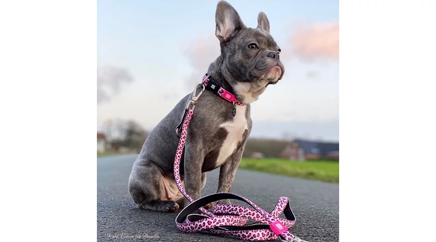 Szerinted egy szafari túl veszélyes? - Ez biztosan nem az. Rózsaszín leopárd dizájnunk minden kutyasétáltatást stílusos kalanddá varázsol.