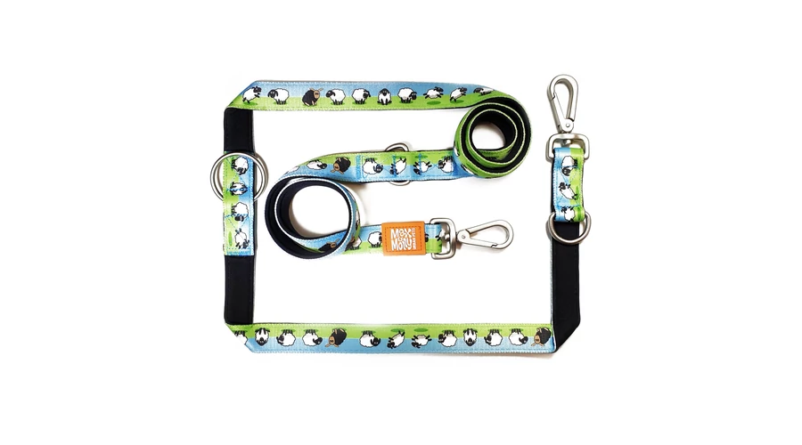 Ezen túl, a többfunkciós póráz 7 lehetséges módon használható: rövid póráz (1 m), közepes póráz (1,30 m), hosszú póráz (1,60 m), csípő póráz, váll póráz, dupla póráz, valamint kikötésként is.