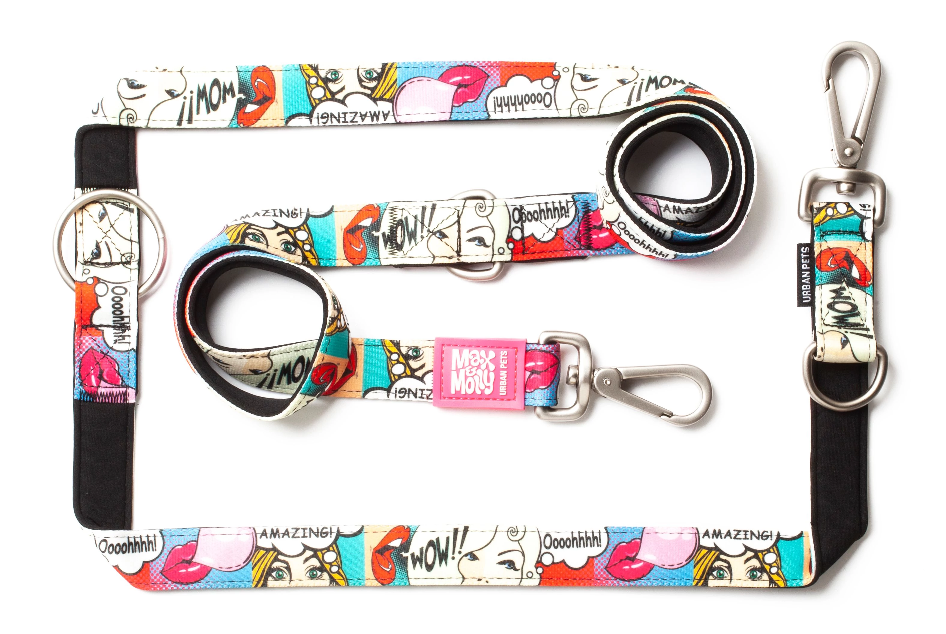 A póráz kényelmét a párnázása és a hátoldali szuperpuha neoprén biztosítja, amely gyorsan szárad és szakadásálló. Az igencsak stílusos és praktikus póráz két csiszolt fémkarabinerrel rendelkezik, amelyek 360°-ban elforgathatók és egy kézzel működtethetők.